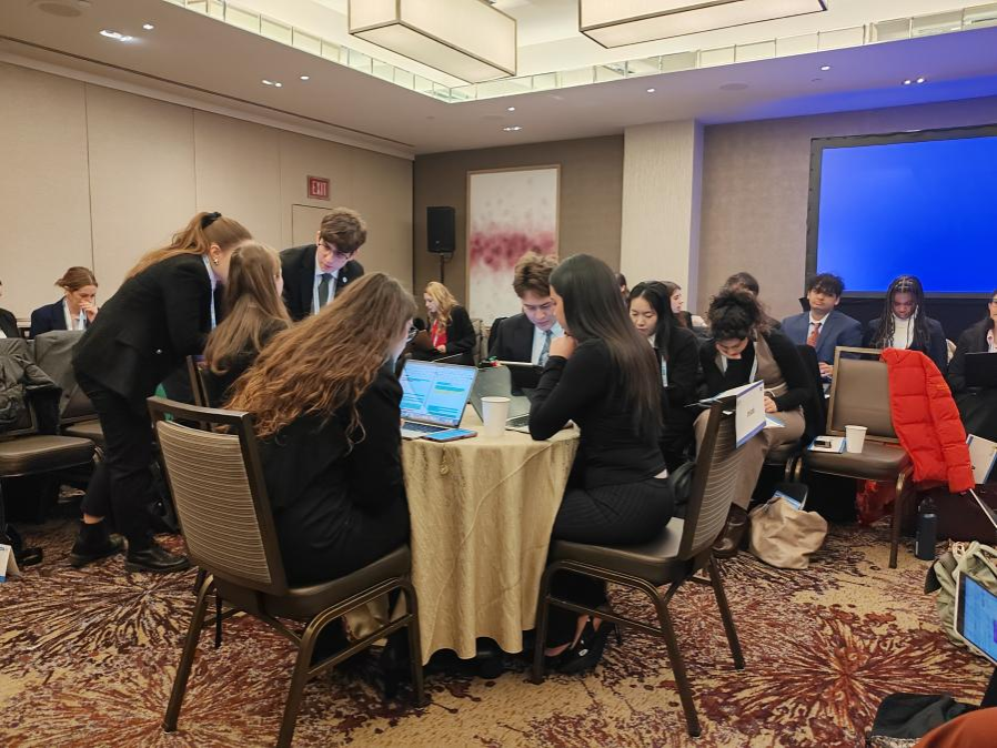 本次大会于2025年2月3日正式开幕,四位同学分别代表不同国家,围绕地球环境危机、抵制恐怖主义、海洋塑料及微塑料处理三大国际热点问题展开了深入的讨论与交流。他们迅速做好角色转换,积极履行代表职责。会议按联合国的四大地区(亚太、非洲、欧洲和美洲)进行分组,各地区代表就各自议题开展讨论,并共同撰写决议草案。
