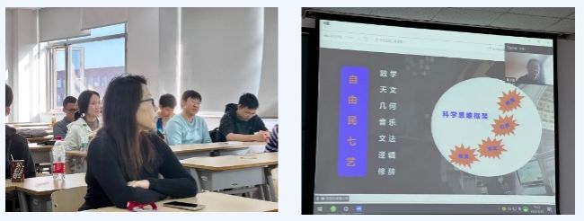 在详细讲解英国的社会人文背景后,张彤老师进一步介绍了英国在创新、教育和金融领域的支柱产业,特别强调了“创新”在英国教育体系中的重要地位,与美国的创新文化有所不同,英国的创新具有“从无到有”的特点。此次项目课程核心将围绕“自由民七艺”和科学思维框架进行展开,注重培养同学们的创新精神和跨学科思维。