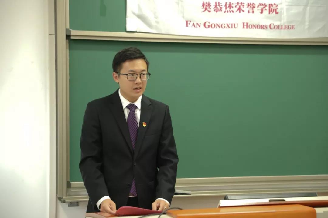 学生会主席冯葛豪致辞,他希望大家能继续本着全心全意为同学们服务的原则,做好学院的各项工作,为学校及其学院的发展建设贡献自己的一份力量。