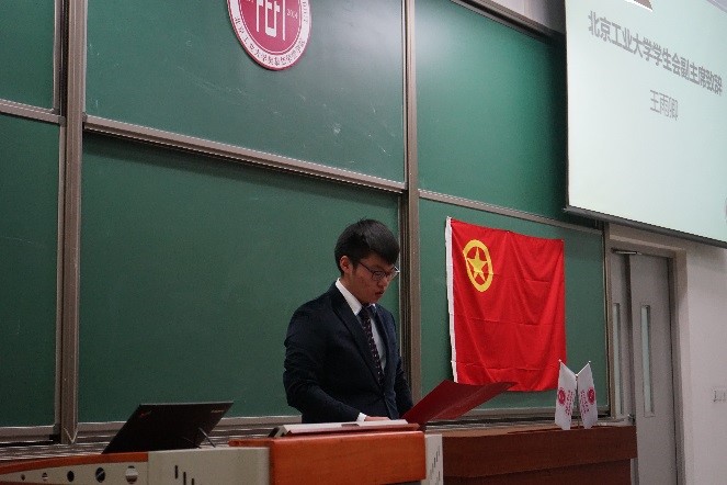 学生会副主席王雨卿和北京-都柏林国际学院学生会主席武思源致辞,他们希望大家能继续本着全心全意为同学们服务的原则,做好学院的各项工作,为学校及其学院的发展建设贡献自己的一份力量。