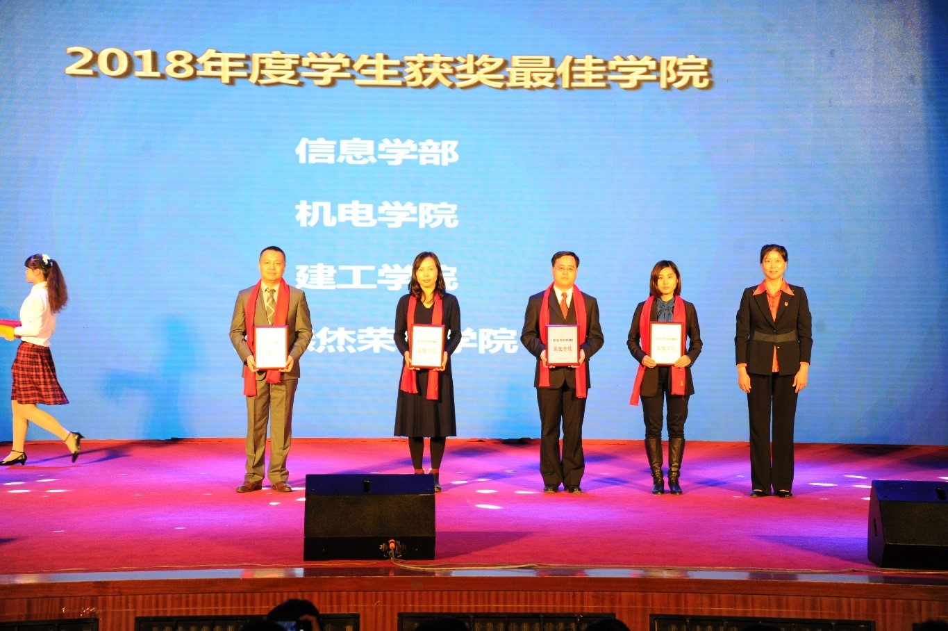2018学生年度获奖最佳学院”,2016级陈慎荣获“国家奖学金”,2015级冉登宇团队荣获“校长奖学金”,相辰橦荣获“科技之星”,张洪滨荣获“文体竞赛奖”,这是学院学生在校级奖项中首次重大突破。