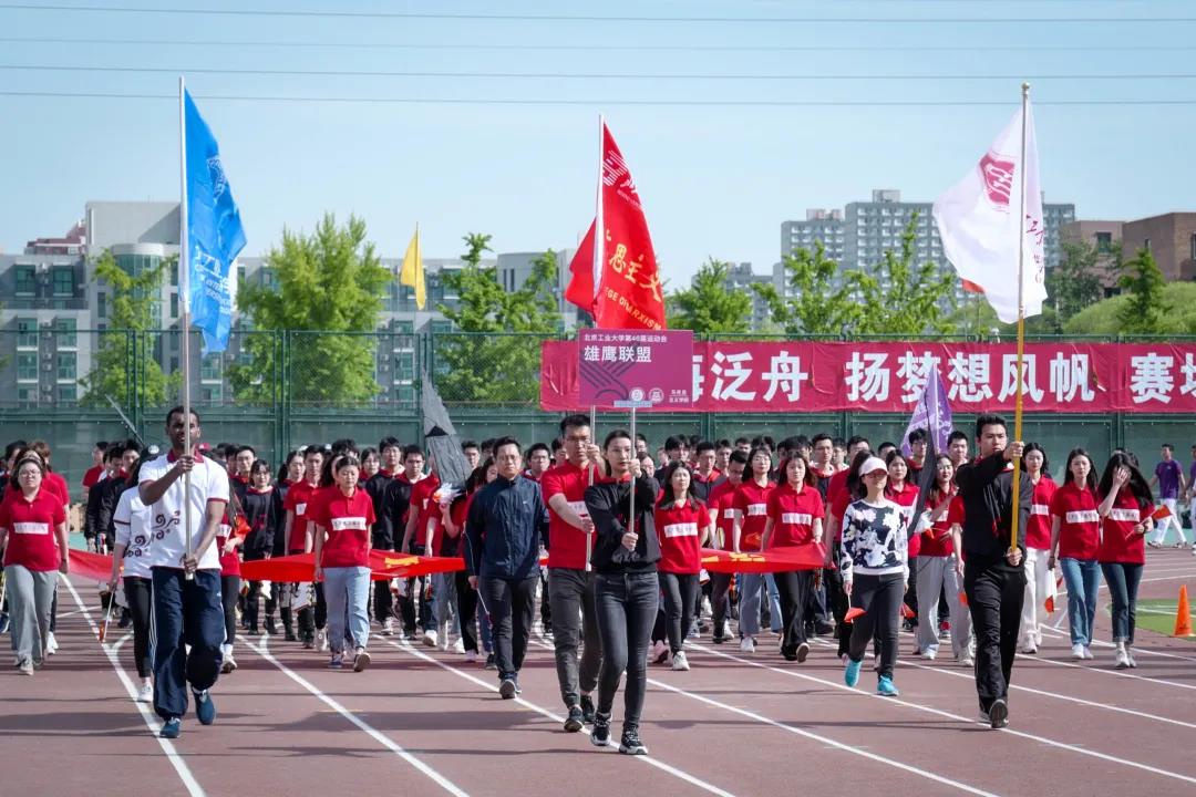 、国际学院组成的联合方阵,寓意三个学院以青春献礼建党百年为契机,将筑牢政治信仰、坚持创新引领、深化国际交流有机融合。三院齐心展风采,鹰击长空做栋材。此届运动会,三院学子将齐心协力、团结拼搏,争创运动佳绩、共展青春风采!”