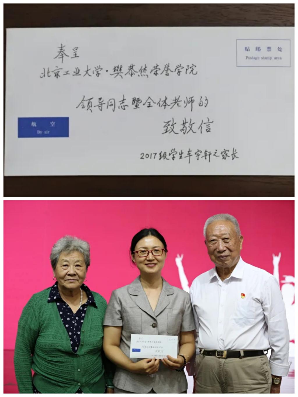 大学四年的成绩,离不开老师们的辛勤付出,也离不开家长们的默默支持。车宇轩同学的爷爷还为学院手写了一封情感真挚的感谢信,表达了家长对学院人才培养模式的认可与信任。