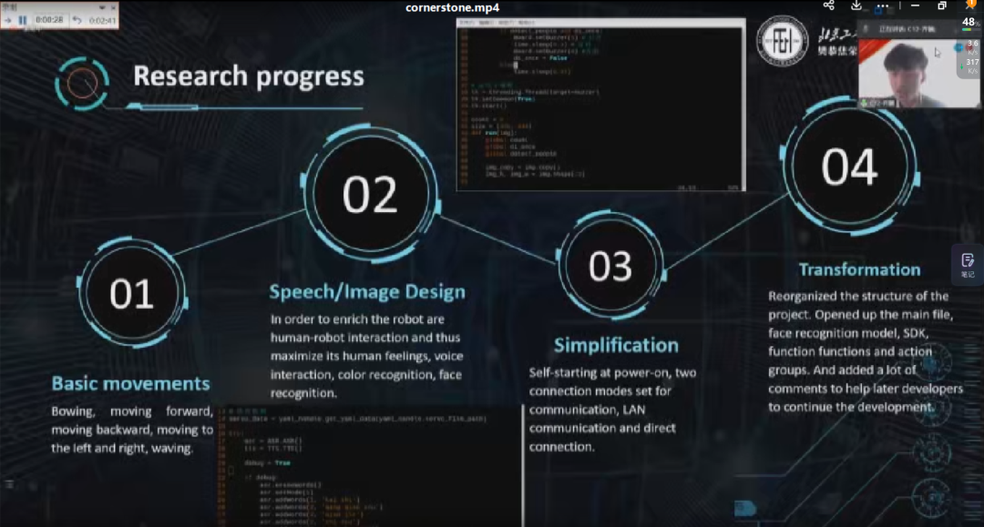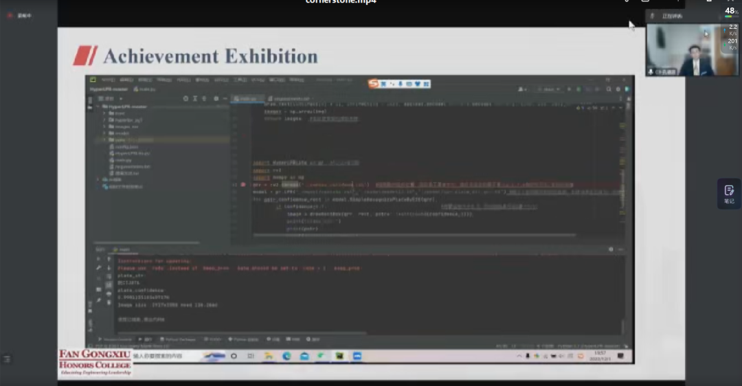 会议开始前,孙院长作了讲话,他对各位指导教师的辛勤工作表示感谢,并希望同学们能以一个非常认真的态度对待Stone计划,让学院特色的Stone计划继续发光发热。随后项目汇报按照2021级Cornerstone(12组)和2020级Keystone(8组)顺序依次进行,汇报包括成果展示和评委提问两个环节。汇报内容覆盖电子科学,信息安全,人工智能、材料制造等多个学科,各专家老师对每个组进行了点评和指导,各组汇报人也与专家进行了充分的思维碰撞和交流。