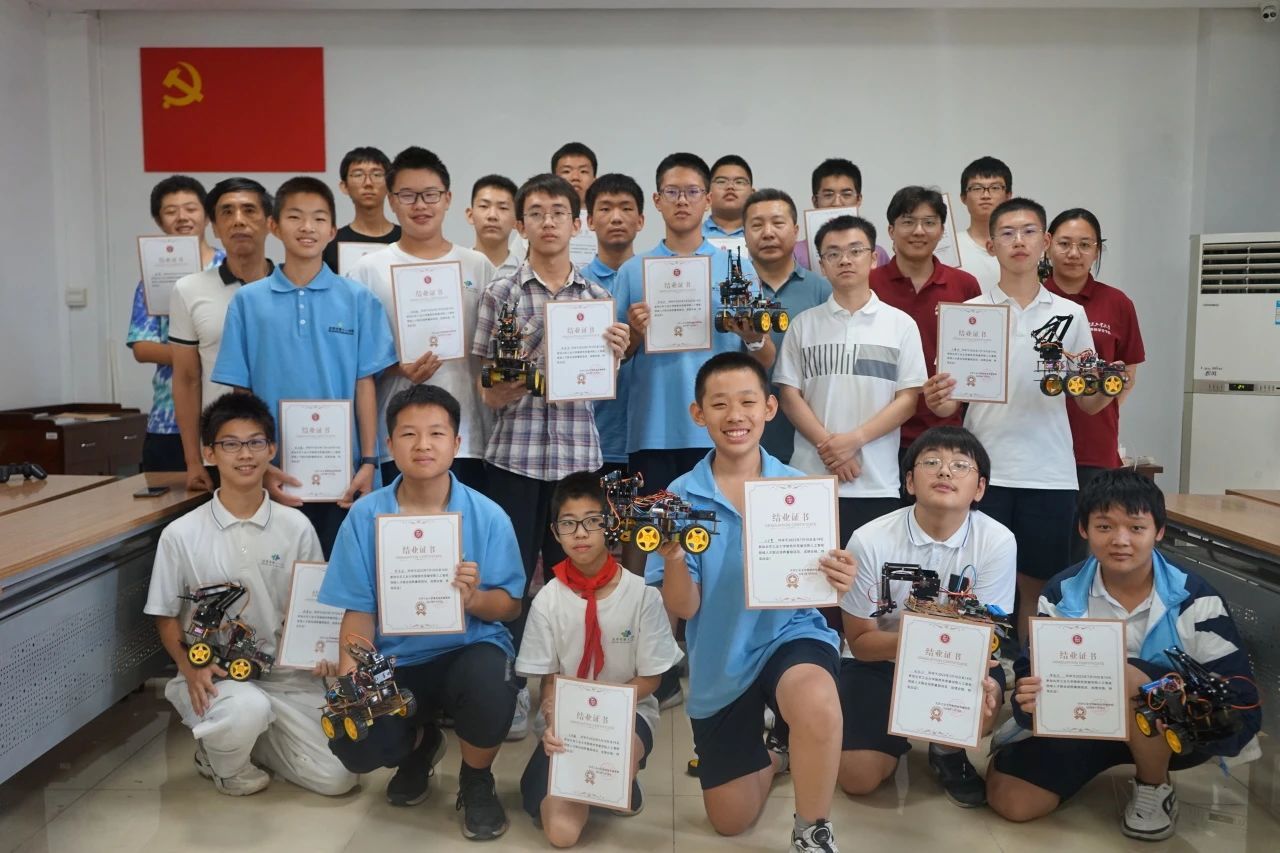 在课程最后,同学小组代表进行了汇报总结,总结了自己这段时间的所学,收获与感悟,所有小组均进行了智能小车的展示,同学们沉浸在科技的海洋里。最后,学院为每位同学颁发了结业证书,祝愿十一中的同学未来在科技领域展翅高飞。