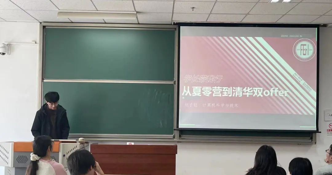 今天的学长带我行活动中四位非常优秀的学长学姐给我们介绍了他们在深造过程中的个人经历,从他们严肃又风趣的分享中,既让我们对深造过程的了解深入,同时也是一场对深造的祛魅。莫霄睿学长和王正学长都分享了自己在投递offer、参加夏令营以及联系导师过程中的波折,将自己的经历真诚向我们讲述。最终四位学长都收到了顶尖院校的录取也向我们说明了在前三年打下学业和科研竞赛的坚实基础是一切的前提,机会留给有准备者,督促我们在尽早规划大学生涯的同时把重心放在学业上。十分感谢学长们分享自己的经历,让我在此次分享交流会收获满满!