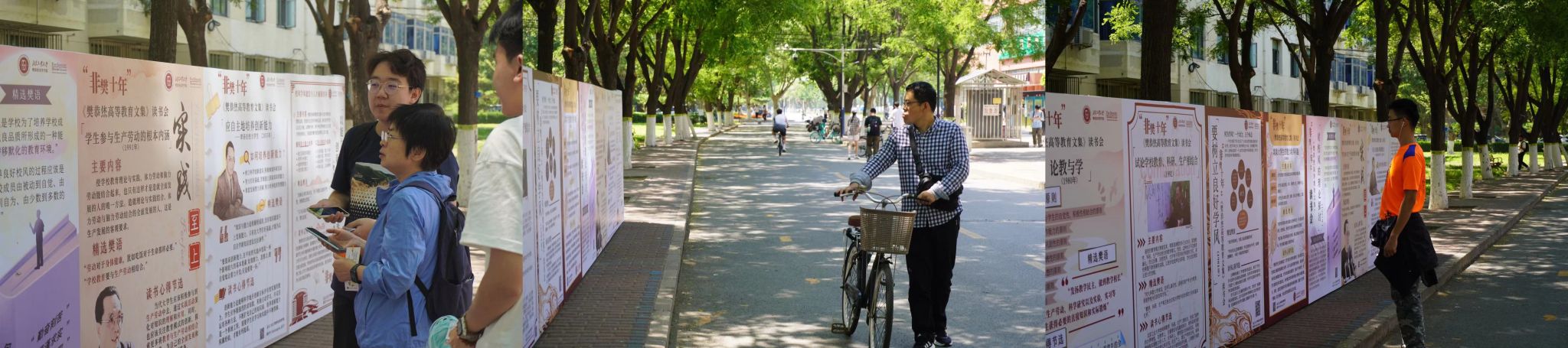 在奥运餐厅主干道前成功举办了“非樊十年”《樊恭烋高等教育文集》读书会成果展,樊院师生精心筹备了路演海报和印有樊恭烋先生精选语录的书签,力求将樊恭烋先生的学术思想和教育理念完美呈现在全校师生面前。