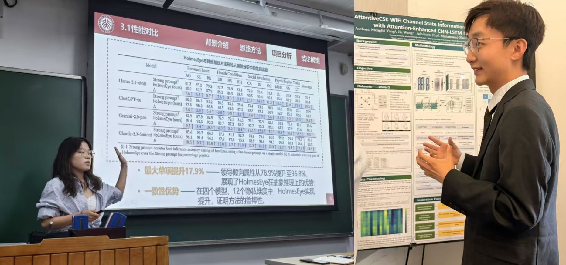 8位同学前往北京大学暑期学校,深入学习了脑机接口、大模型等前沿课程;另有5名同学分别赴德国亚琛工业大学、美国北卡罗来纳州立大学等知名高校参与科研项目。在导师的悉心指导下,同学们完成了多场学术汇报,积极参与论文撰写与成果展示,并在海报研讨会上进行交流与分享,在学术表达和国际视野方面均获得显著提升。