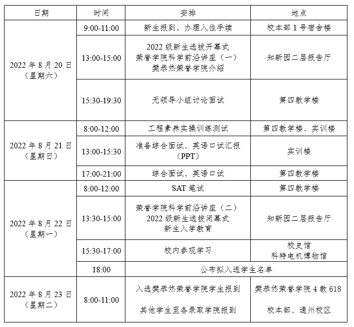五、参加选拔复试的同学须全程参加所有活动,一经报到不得擅自离校。如有特殊情况,须提交由家长签字的书面申请,经学校核实批准后方可离校。
